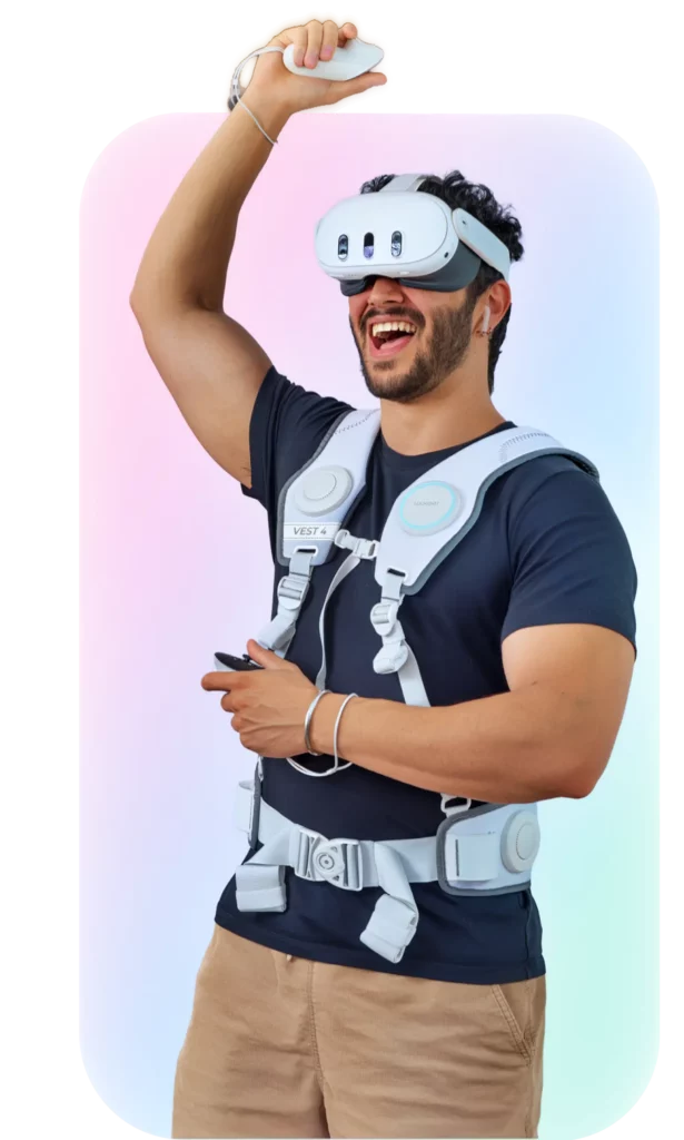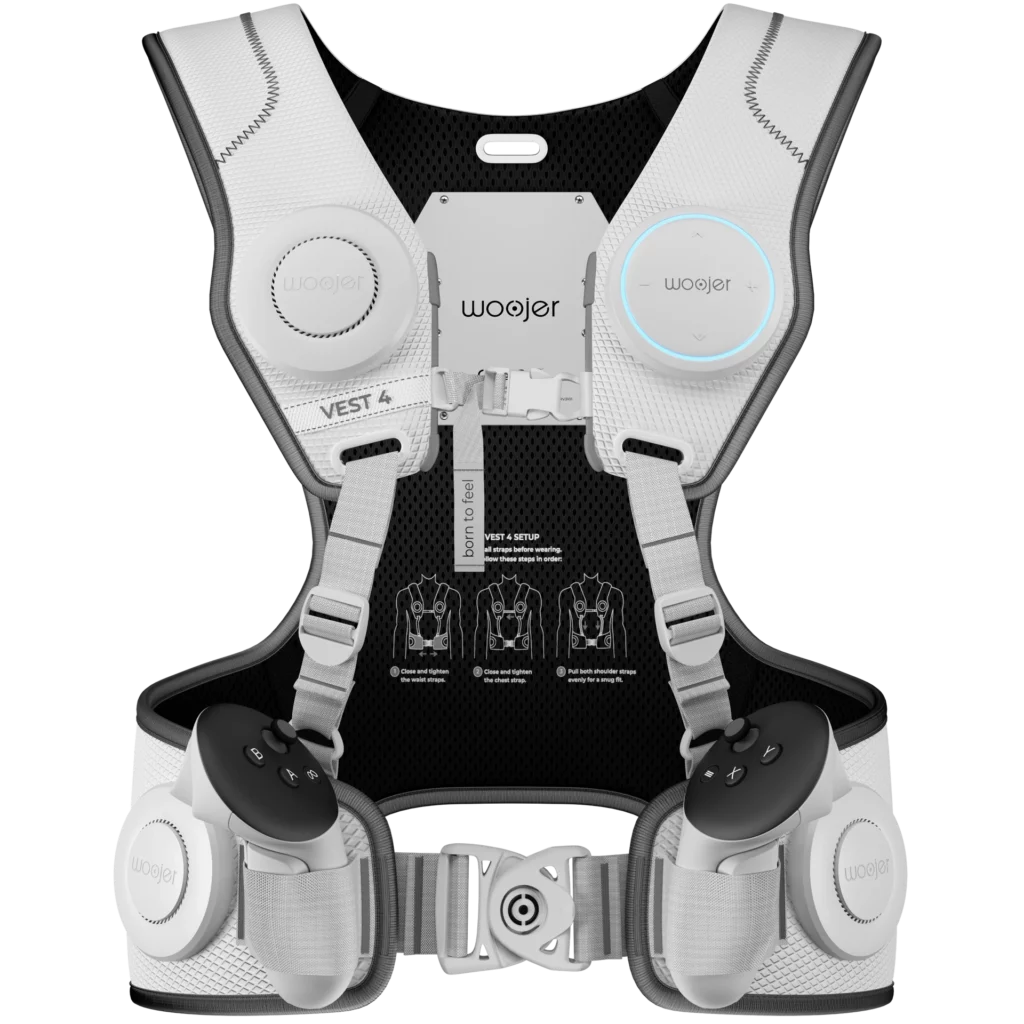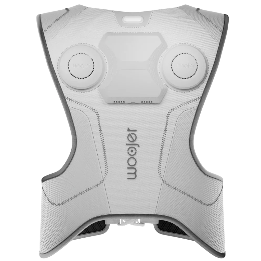 És un dispositiu hàptic… un dispositiu hàptic que et fa sentir el so (l’àudio) a un altre nivell. Si un visor de VR et fa sentir, que a nivell visual, estàs en un altre món, la Woojer Vest 4 Meta, t’ho fa sentir a nivell auditiu. Realment no és un aparell de so, sinó un complement al so. Aquest dispositiu provoca unes vibracions que fan que sentis les ones de so… crec que la manera més fàcil d’explicar-ho és: tots coneixem la sensació que hem tingut a l’estar al davant d’uns altaveus a la discoteca o en un concert… com aquest so et fa vibrar el cos… doncs això és el que fa la Vest 4.